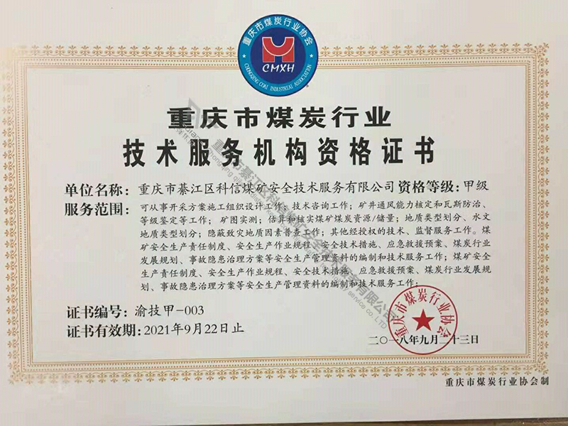 重庆市煤炭行业技术服务机构资格证书