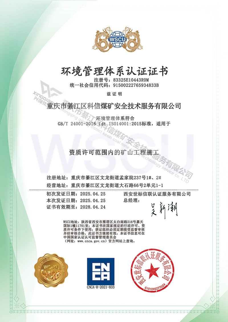 环境管理体系认证证书