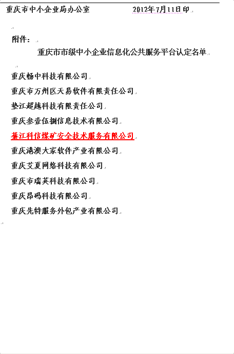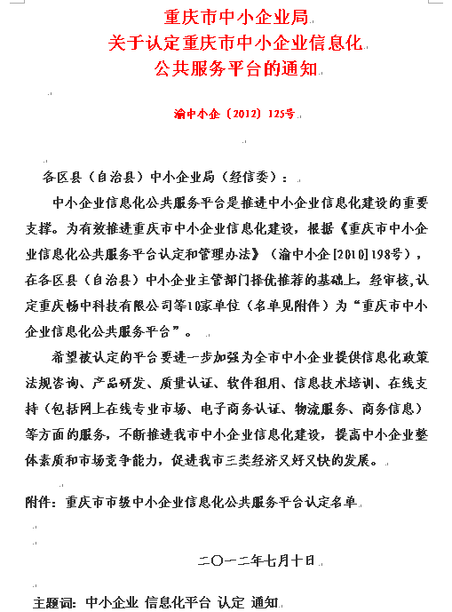 重庆市中小企业局关于认定重庆市中小企业信息化公共服务平台的通知