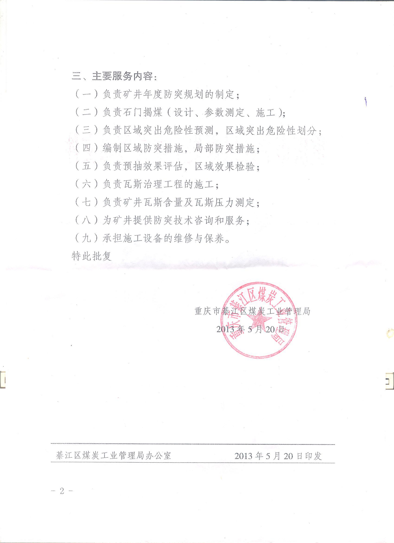 重庆市綦江区煤炭工业管理局关于对綦江区科信煤矿安全技术服务有限公司成立瓦斯防治专业队伍的批复